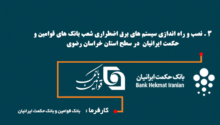 3 . نصب و راه اندازی سیستم های برق اضطراری شعب بانک های قوامین و حکمت ایرانیان در سطح استان خراسان رضوی